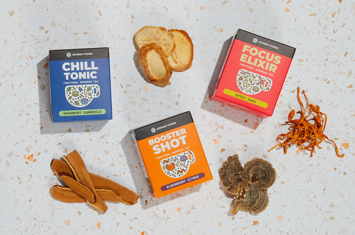 Choose Elevate your daily rituals with the complete Atomic Fungi collection. This bundle includes all three of our functional mushroom teas—Focus Elixir for clarity and energy, Chill Tonic for deep relaxation, and Booster Shot for immune support. Crafted with premium functional mushrooms and botanicals, each blend is designed for a specific wellness goal while delivering rich, delicious flavor. Whether you’re starting your morning, winding down at night, or giving your body an extra layer of defense, this trio has you covered.
